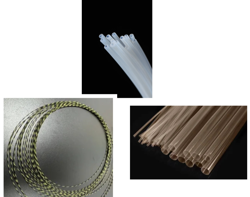 定制各种材料(PEBAX、TPU、PVC、FEP、TPE、PEEK、PI、PA12、PE/PP、ABS)、多种规格(单腔、多腔、薄壁、异形、多排、色线)的导管。