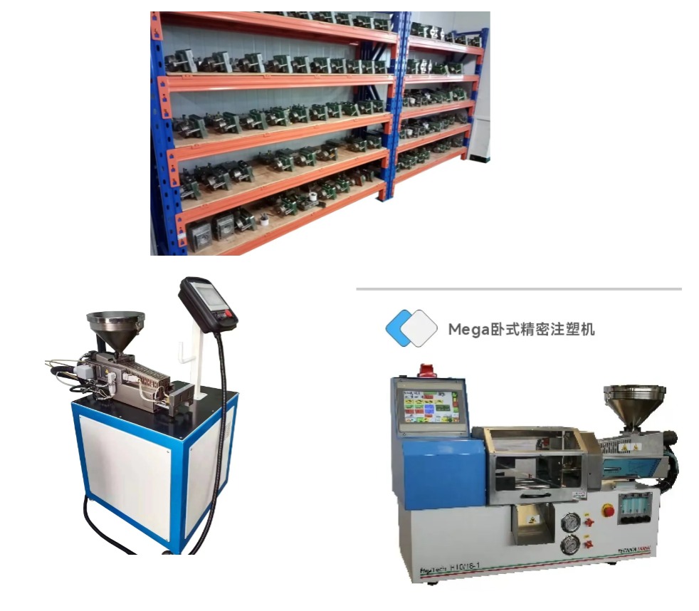 注射系统优势 螺杆塑化 活塞注射 超低能耗 MEGA微型注塑机的总额定功率只有3kw 正常生产1.5-2.5kw 快速换料换色 灵活更换模具 节约水口胶料 节约模具成本 Mega微型模具只做模芯无需模胚 占地面积小