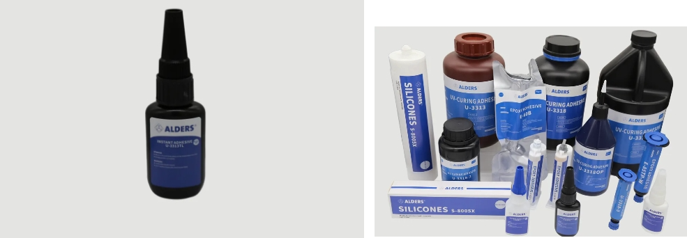 ALDERS® U-3313TL是一款UV+湿气双重固化的胶水,符合生物相容性。胶水涂覆之后,可见光的部分可以UV光固化,不可见光部分可通过湿气自然固化,非常适用于一些半透明或者不透明结构的产品,能够解决不透明的基材使用UV胶水无法固化的问题。U-3313TL对于PP、PEBAX等惰性材料也有很好的粘接力。