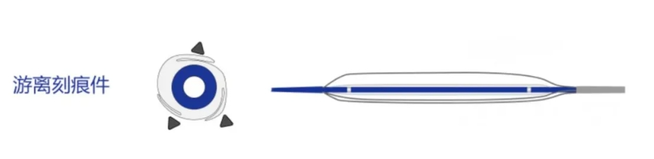 为了弥合“切割球囊”和“导丝球囊”之间的性能鸿沟,刻痕球囊应运而生。它试图在锐利切割与柔顺通过这两大看似矛盾的特性之间找到新的平衡点。