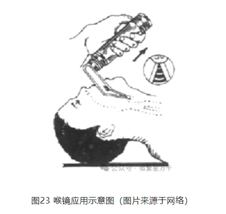 这类观察方式操作简单,但观察深度有限,对一些微小细节也无法有效观察,常用于耳鼻喉内的检查。有时光线太暗的情况下,医生还会佩戴额灯进行照明,如图4所示: