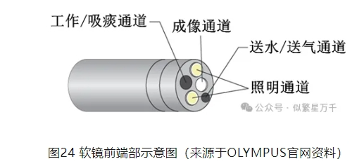 不论是硬镜还是软镜,其最基本的构造都应该包含成像通道和照明通道,根据不同应用场景,一般软镜还会包含工作/吸引通道、送气/送水通道等。