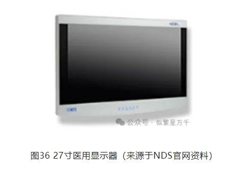 显示器用于内窥镜成像的呈现,其分辨率、色域、背光亮度、对比度等指标对于良好的图像呈现也是至关重要的,同时显示器应用于医疗场景,对于防溅、防刮和电磁兼容性等可靠性设计层面都会有相关的要求。如图36所示为27寸医用显示器: