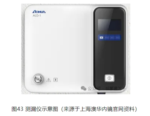 内镜测漏主要针对软镜,通过充气浸水等方法判断内镜是否存在破损,减低维修成本及患者交叉感染概率。如图43所示为测漏仪: