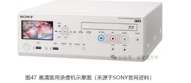 内镜图像的存储主要用于将内镜捕获的静态图像和/或视频存储在内部硬盘和/或外部存储介质(如U盘)中,如图47所示为高清医用录像机示意图: