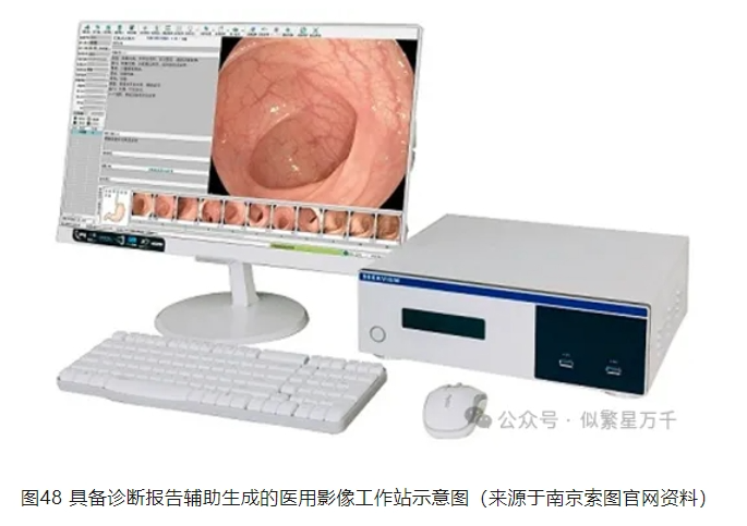 内镜图像的打印主要涉及的设备是打印机,但有时也会涉及到诊断报告的生成,如图48所示为具备诊断报告辅助完成的医用影像工作站示意图:
