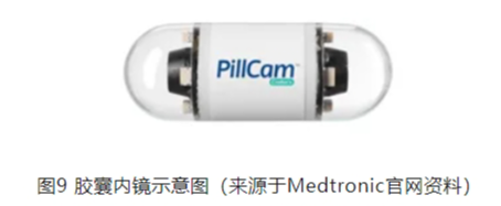 还有一种摄像头成像方式:在微型摄像头的基础上增加一块电池、一个无线模块和一个磁控单元做成胶囊状,仅需吞咽下该胶囊,便可通过胶囊在人体内部脏器中进行拍摄,并将图像通过无线信号传出显示,如图9所示: