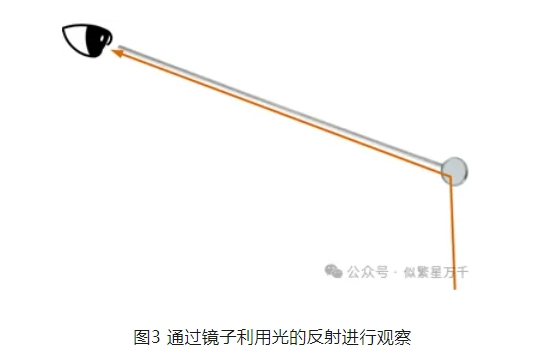 第一种是直接通过镜子利用光的反射进行观察,如图3所示: