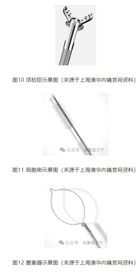 剪切组织可以使用活检钳、细胞刷或者圈套器等外科器械随内窥镜管路一起置入人体内部完成相应操作。
