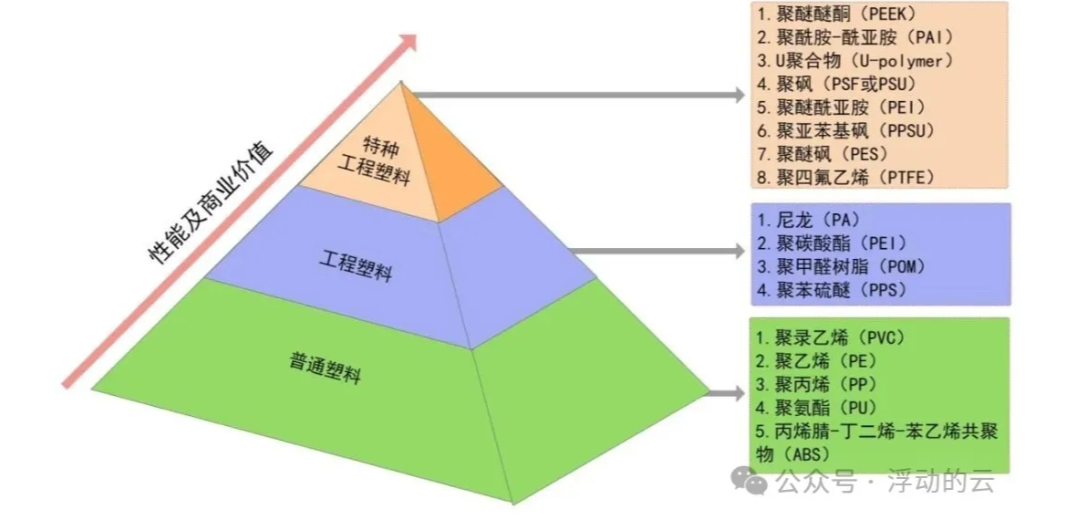 普通塑料、工程塑料、特种工程塑料示意图