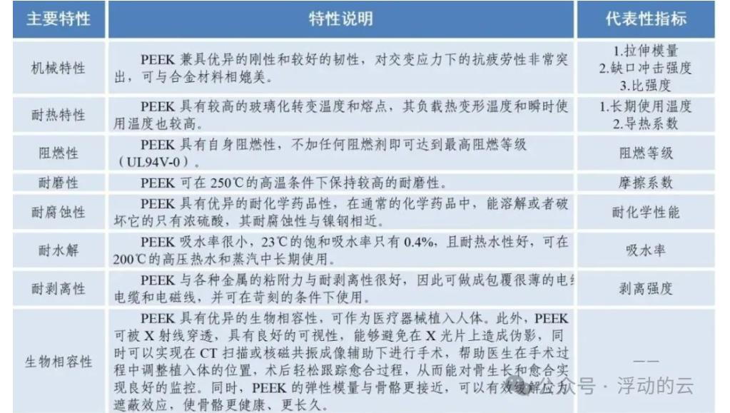 PEEK材料综合性能优异