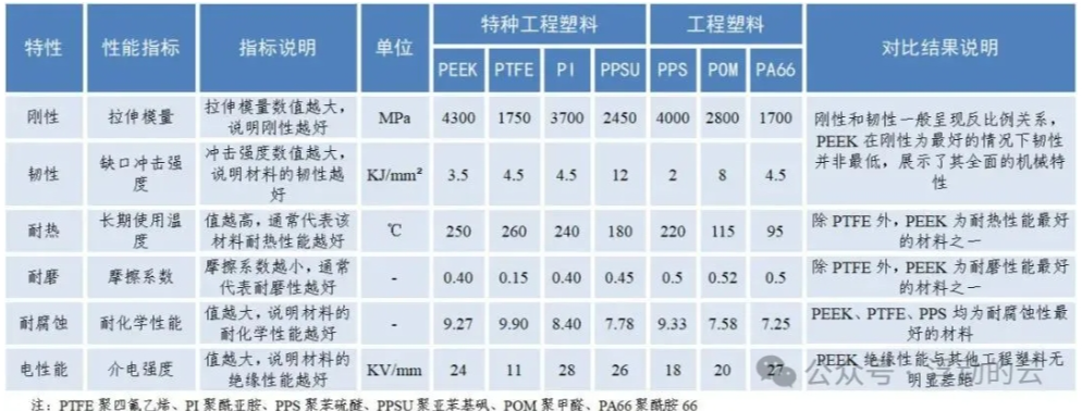 PEEK材料与工程塑料、特种工程塑料对比
