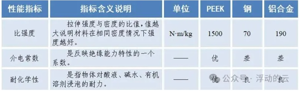 PEEK材料与通用金属材料对比