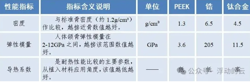 PEEK材料与医用金属材料对比