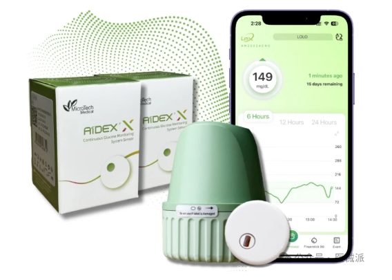 Silicon-based Bionics(硅基仿生)动感CGM:硬币大小传感器,14天无痛监测,每5分钟数据。生成AGP曲线,捕捉隐匿波动。App共享医生/亲友,实现“血糖共管”。防水、舒适,MARD 8.5%,头部品牌。